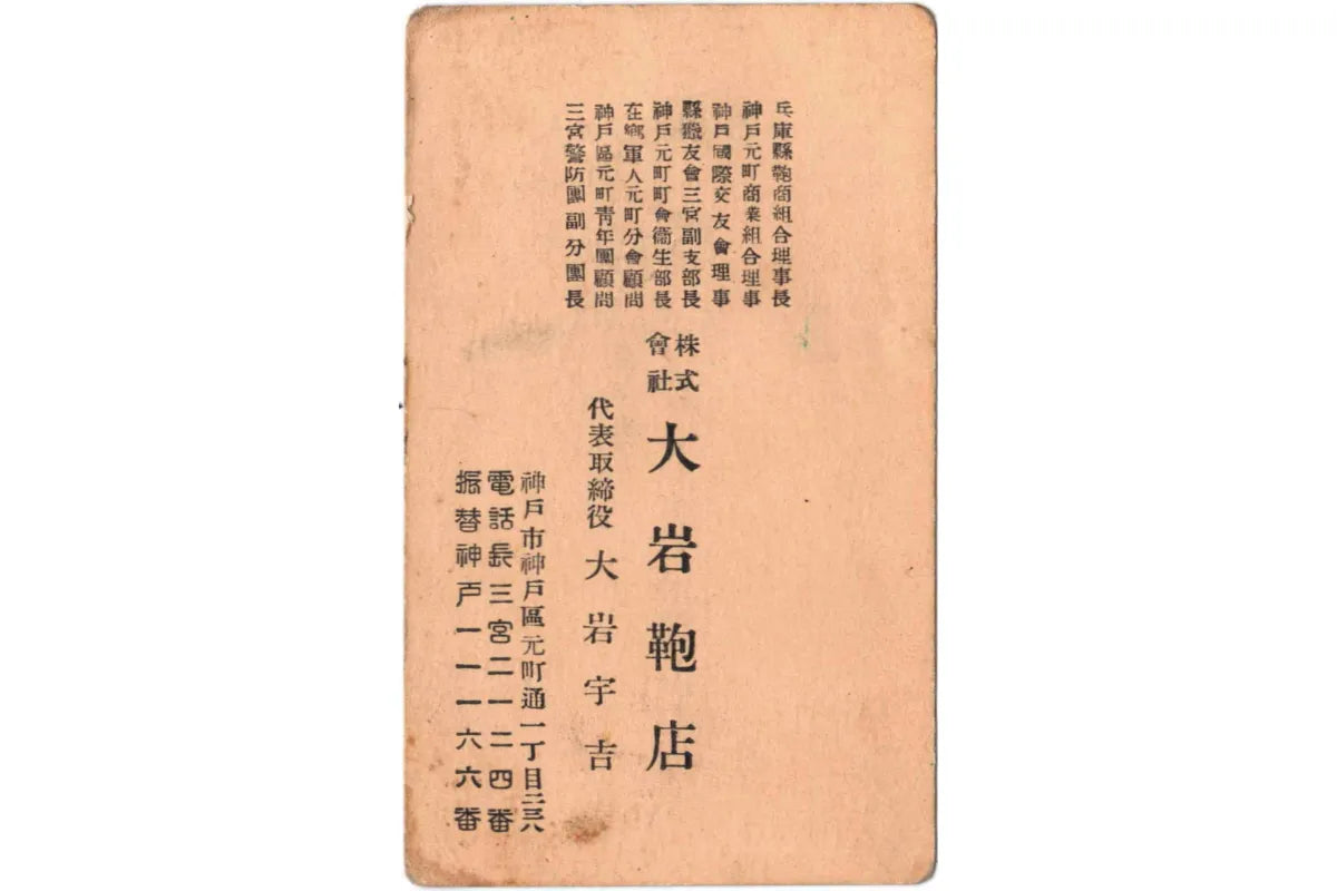戦争で本社建物や工場など多くのものを失いましたが、大上鞄店は名前こそ変わったものの、実体は従来の大岩家の事業体とほぼ変わらず、神戸元町で象印のキャビントランクや鞄、革小物、ハンドバッグなどの製造と販売を行いました。